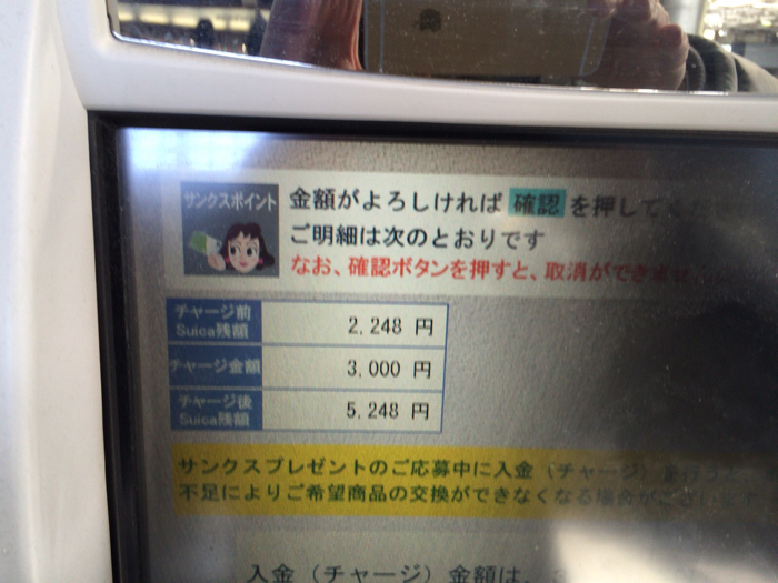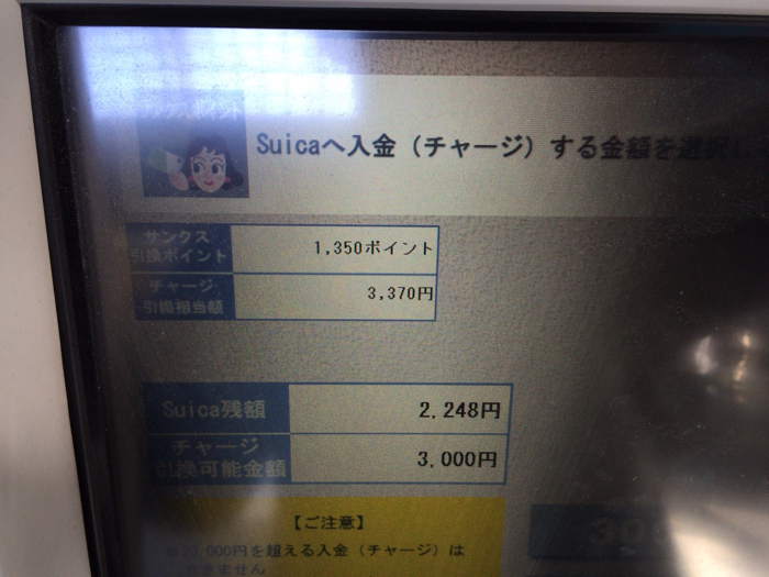 ということで、無事にSuicaへ3,000円チャージできました。良かった〜。