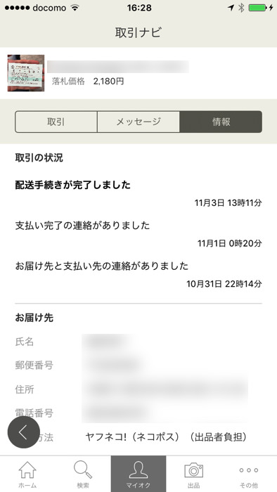▼ちなみに、ネコポスの場合は配送手続きが完了したことが相手に自動で伝わるのが便利ですよ。