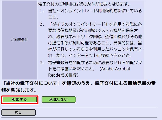 ▼電子交付に関する注意事項が表示されるので、内容を確認して「承諾する」ボタンを押しましょう。