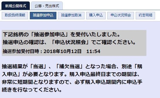 抽選資金は当選結果が出るまでは拘束され、株式の購入など他の取引には使えないので注意してくださいね。