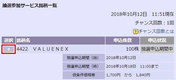 ▼IPO抽選に参加する銘柄の「選択」にチェックを入れましょう。