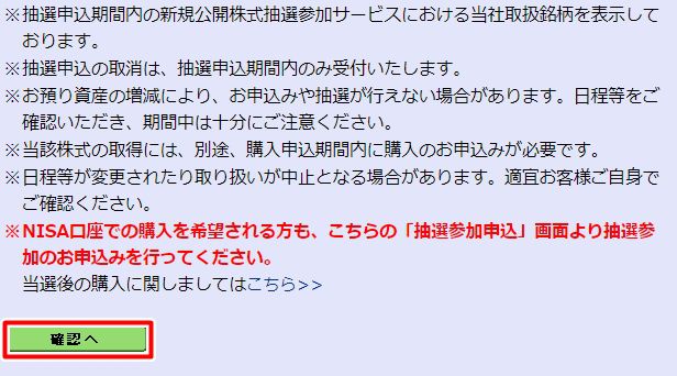 ▼内容や注意事項を確認したら、「確認へ」ボタンを押して先に進みます。