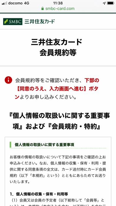 ▼三井住友VISAゴールドカードについての規約が表示されますので、目を通しておきましょう。